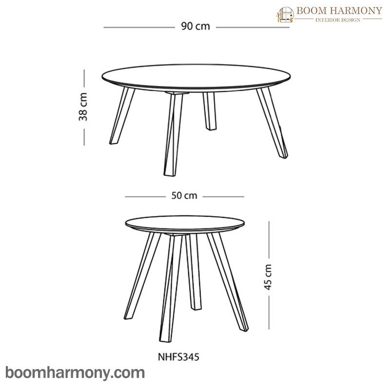میز جلو مبلی: قطر ۹۰ سانتی متر و ارتفاع ۳۸ سانتی متر (هم تراز با نشیمن مبل)