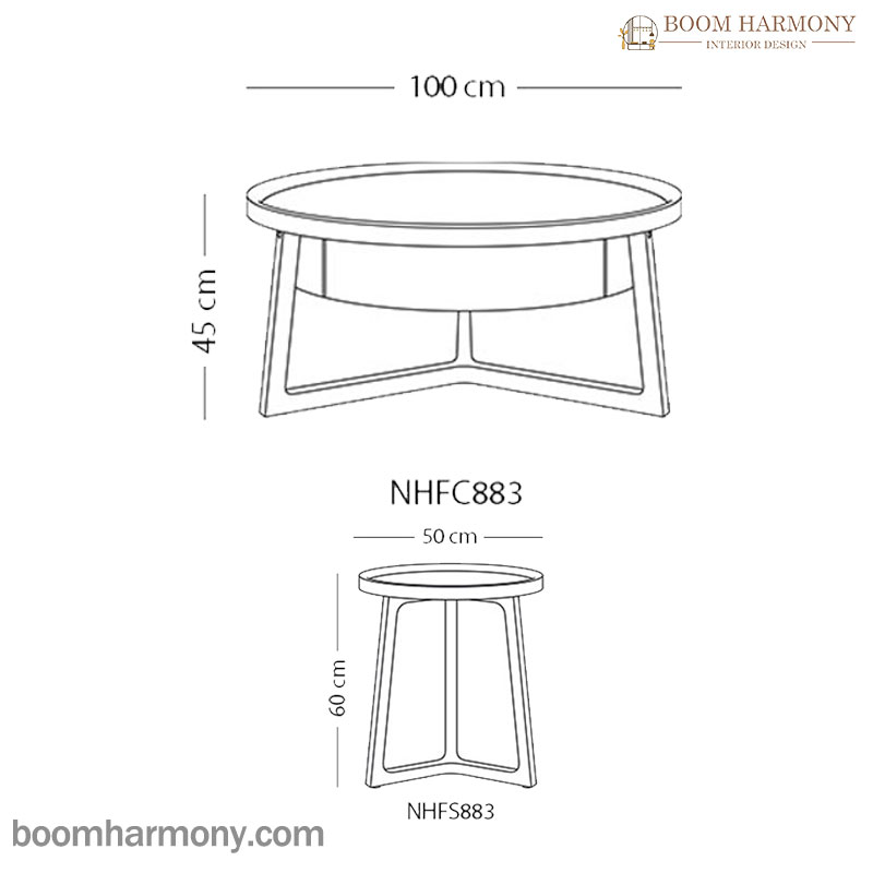 میز عسلی: دارای قطری 50 سانتیمتری و ارتفاع پایهای 60 سانتیمتری است. این تفاوت ابعاد، کنتراست زیبایی ایجاد کرده و جذابیت بصری مجموعه را دوچندان میکند.